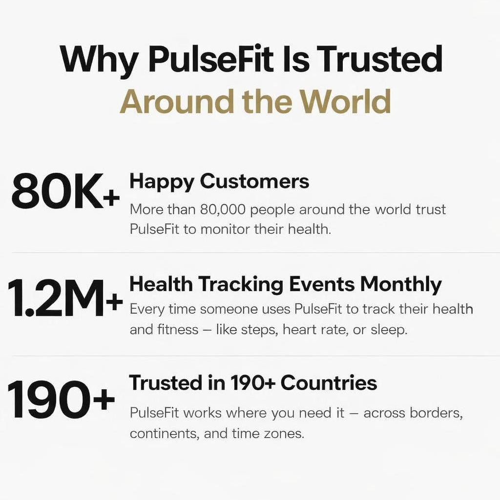 Lightweight, stylish, and comfortable. PulseFit monitors your heart rate, steps, calories, and sleep patterns, keeping you motivated to reach your health and fitness goals.